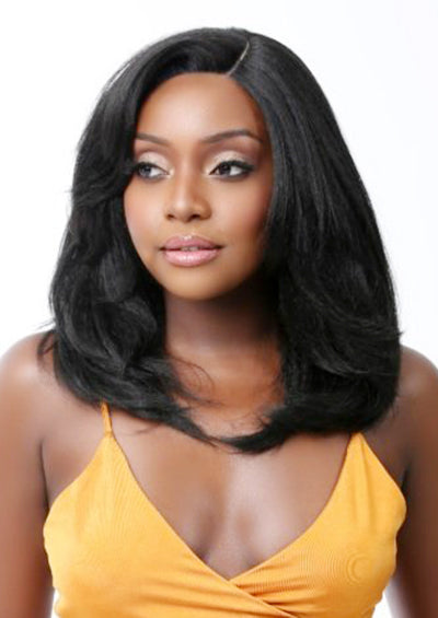 BFF LACE FLORIS [Full Wig | HD Lace Front | Premium Synthetic Fiber] Long Bob with Voluminous Bangs. Virtually Undetectable Lace front. Wider and Deeper Lace for a Full Hairline [Natural Baby Hair]. Maximum Density, Glueless Lace, and Pre-Plucked Natural Hairline.