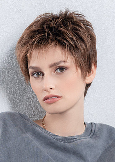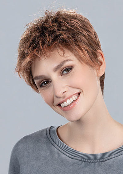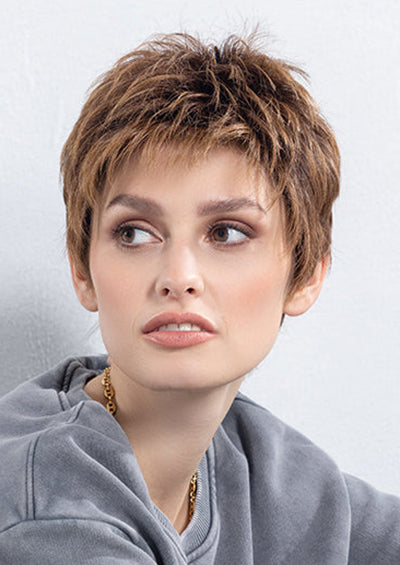 CHAT [Full Wig | Extended Lace Front | Wefted | Heat Friendly Synthetic] by Ellen Wille is a chic pixie cut with soft layers for natural movement and styling versatility. Made with heat-friendly synthetic fiber, this short wig can be worn sleek or textured. The extended lace front creates a seamless hairline, while the wefted cap, cooling ear tabs, and lightweight design ensure breathable, all-day comfort.