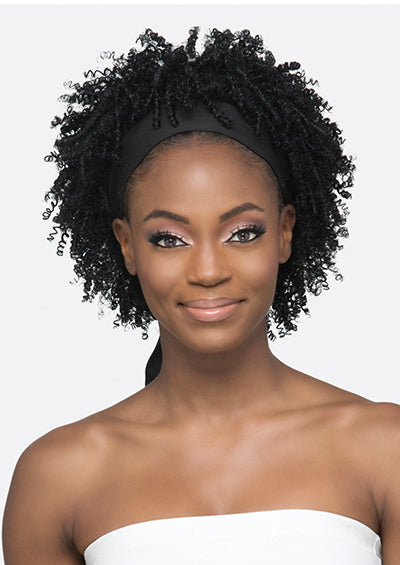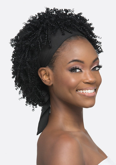 HB-ANJIKA [Headband Wig | Synthetic Fiber] Short Tight Coil Curl with Black Tie Back Headband. Easy to Wear & Go.