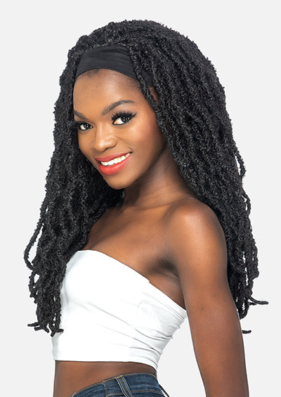 HB-JULIA [Headband Wig | New Future Synthetic Fiber] Loose Wave Butterfly Locs with Black Velvet Headband. Trendy Butterfly Locs Wig. Youthful and Fun.